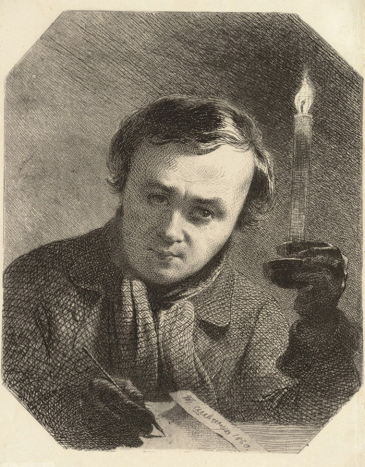 In Nizhniy, the winter of 1857-58 was a very productive time for Shevchenko. He created many paintings, particularly portraits, edited and transcribed into Bilsha knyzhka (The Larger Book) his poems from the period of exile, and wrote new poetic works. After finally receiving permission to live in the capital, he left for St. Petersburg where he devoted his greatest attention to engraving, becoming a true innovator in this field.